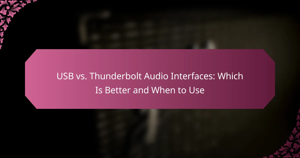USB and Thunderbolt audio interfaces differ primarily in speed, performance, and compatibility. USB interfaces are widely used and compatible with most devices, while Thunderbolt offers higher data transfer rates, making it suitable for professional audio applications.