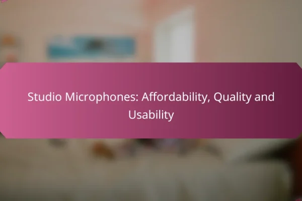 Studio microphones are designed with specific features that enhance their performance for recording music. Key attributes include type, frequency response, signal-to-noise ratio, and build quality, all of which significantly impact the quality of recordings.